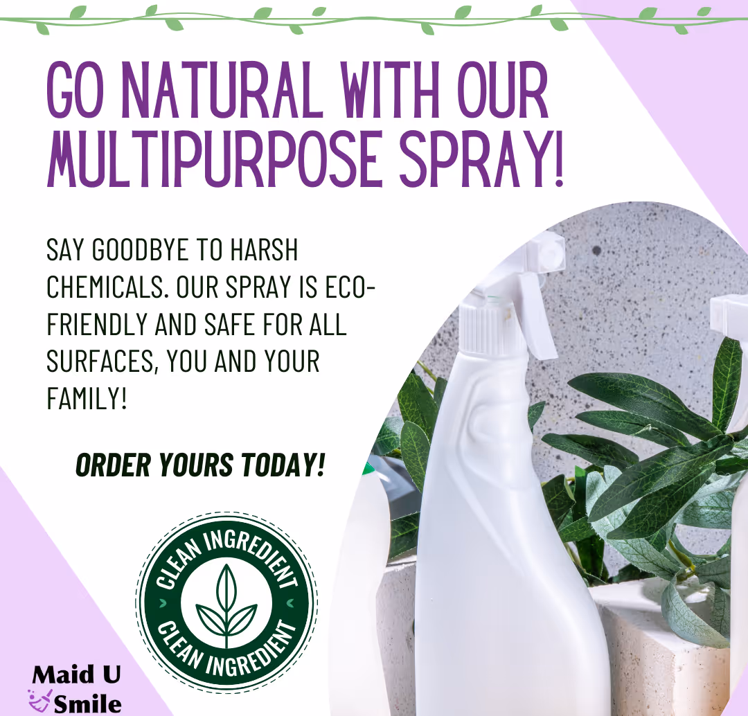 Our Natural Multipurpose Spray and Concentrate are safe for your family, your pets, and your home. They can be used for a wide range of everyday cleaning needs. This is the same spray we use during our professional cleaning visits.